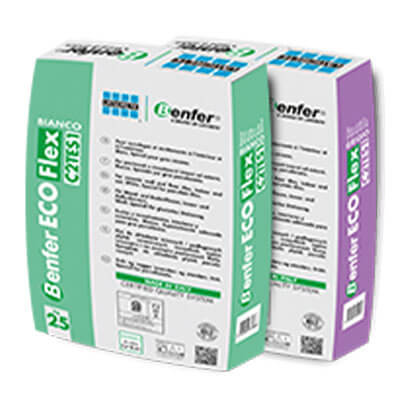 BENFERGRIP C2TE is a highly tixotropic adhesive in powder consisting of highly resistant cement, selected granulometry quartz, synthetic resins and special new generation additives. Its formula was conceived and developed for rapid and safe installation of all ceramic materials, even from top to bottom